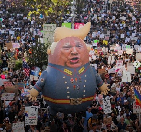 Vaşinqton Abidə Parkına toplaşan minlərlə insan əllərində pankart və lövhələr, eləcə də ABŞ bayraqları ilə Tramp administrasiyasının siyasətinə etiraz ediblər.