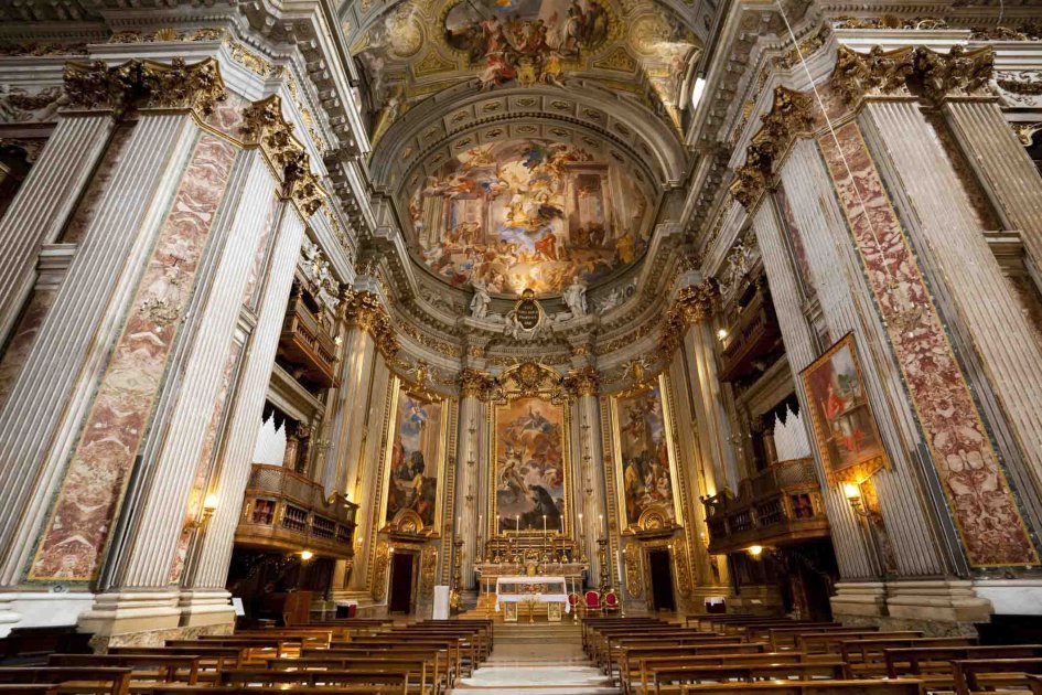 Presedenttv.com xəbər verir ki, XVII əsrdə barokko memarlığı üslubunda inşa edilən kilsə tavanındakı tarixi freskaları əks etdirən böyük güzgüsü ilə sosial mediada populyarlaşıb. Kilsənin tavanında italiyalı məşhur memar Andrea Pozzo tərəfindən hazırlanmış freskalarda yezuit ordeninin banisi olan Müqəddəs İqnazio di Loyolanın cənnətə qəbulu təsvir edilir. Freskaları daha yaxından və fərqli bucaqdan görmək istəyən ziyarətçilər kilsənin ortasına yerləşdirilən güzgüdən istifadə edirlər.